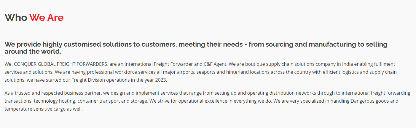 CONQUER GLOBAL FREIGHT FORWARDERS PRIVATE LIMITED