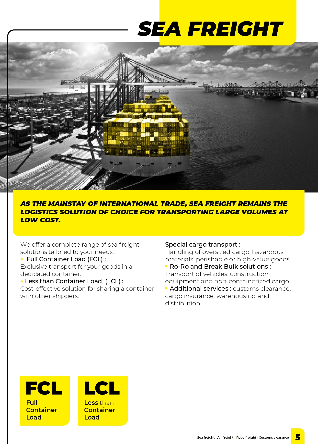 We offer a complete range of sea freight solutions tailored to your needs: