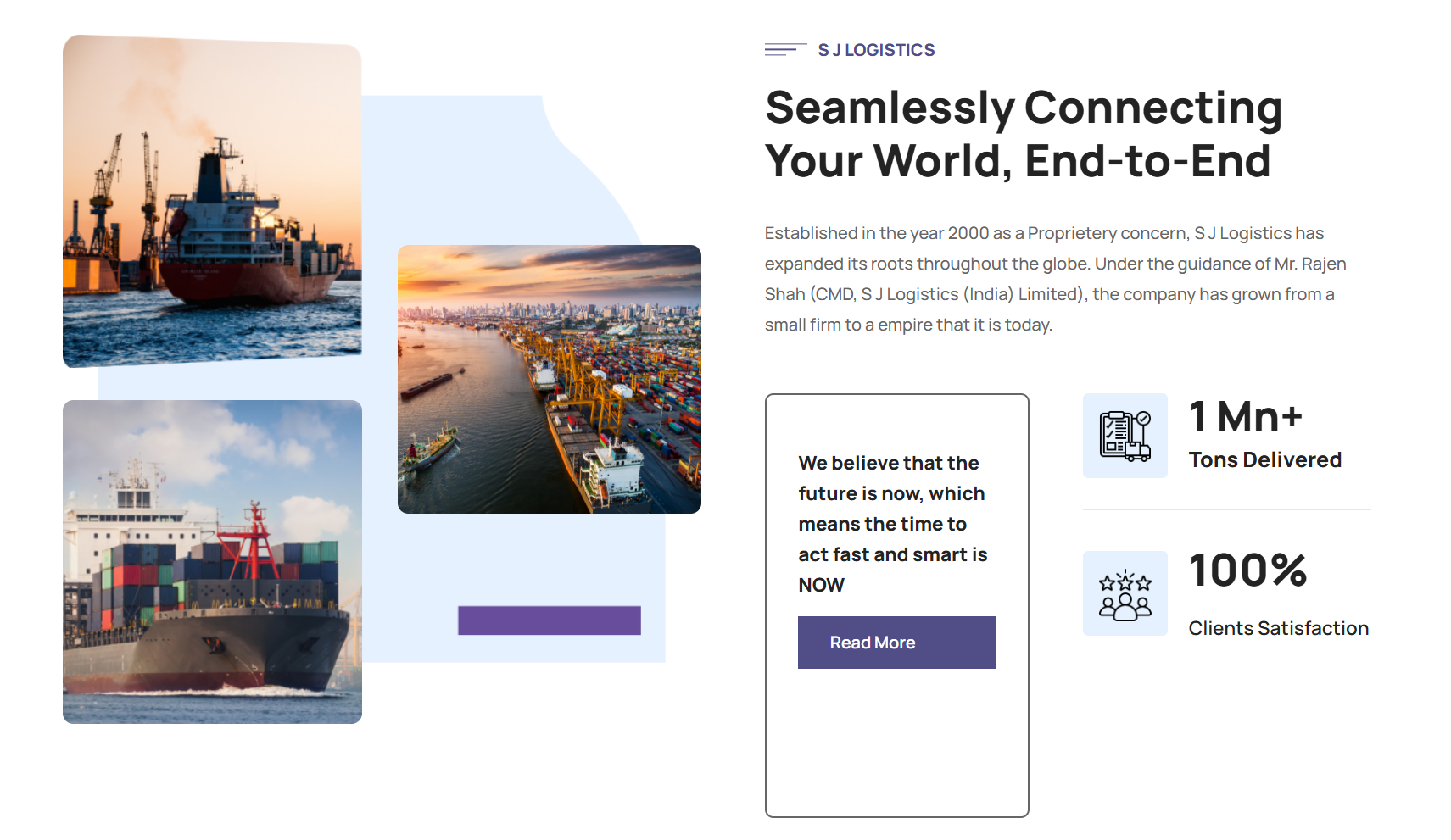 S J Logistics India Limited stands as a premier international logistics service provider, encompassing an array of services including freight forwarding, transportation, warehousing, Non-Vessel Operating Common Carrier (NVOCC), and customs clearance. Established over two decades ago, S J Logistics has entrenched itself nationally, accumulating extensive industry expertise. Our proficiency extends across various sectors, including but not limited to yarns, textiles, transmission towers, tyres, polyfilms, chemicals, agro commodities, and Fast-Moving Consumer Goods (FMCG). Operating under an asset-light business model, S J Logistics collaborates with a diverse range of partners, ensuring the dependable, efficient, and punctual transfer of freight globally. Incepted in 2003, S J Logistics emerged as a response to the market's demand for an ethical, dependable entity in the Indian logistics landscape, with an ambition to consolidate all international logistics needs under one umbrella. Unwaveringly dedicated to cost innovation and customised service, our company transcends the traditional role of a vendor, instead positioning itself as a strategic logistics ally. We are committed to devising bespoke solutions for our clientele, addressing their comprehensive logistics needs from inception to completion.