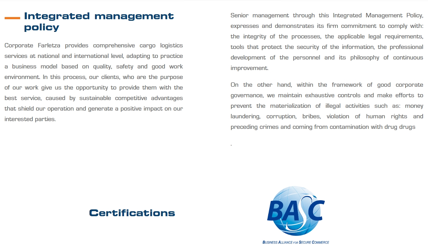 FARLETZA is a very experienced and service oriented freight forwarder in Ecuador. Our presence in the local market is very strong and in terms of cargo volume, we are the number one freight forwarder in the country. We handle from the Far-East approximately 14,000 TEUs per year and globally we handle approximately 19,000 TEUs per year (only in IMPORTS to Ecuador). This year we certified ourselves as a BASC company and also started EXPORTS to the world. Our invoice volume amount per year is approximately 22-25 million USD per year. We handle all kinds of shipments, FCL, LCL and Air Shipments for IMPORTS to Ecuador, exports only FCL and LCL. We do not handle air shipments at the present time.