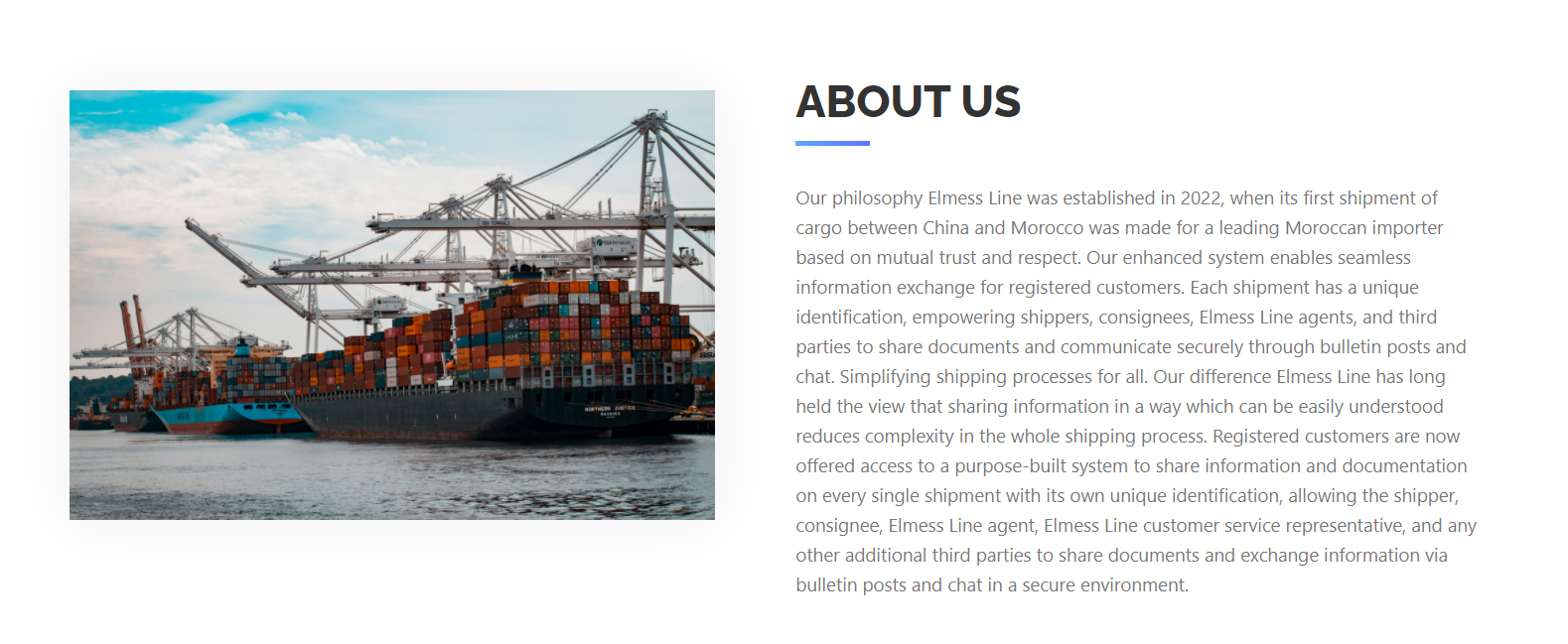 ELMESS LINE is a dynamic and reliable freight forwarding and logistics company specializing in international shipping, customs clearance, and supply chain solutions. With a dedicated team of professionals and a strong global network, we provide end-to-end logistics services tailored to meet the needs of our clients across various industries. Our Mission To deliver seamless, efficient, and cost-effective logistics solutions that connect businesses with the world. Our Services • International Freight Forwarding (Air, Sea, and Land) • Customs Clearance & Documentation • Warehousing & Distribution • Door-to-Door Delivery • Project Cargo Handling • Import/Export Consulting