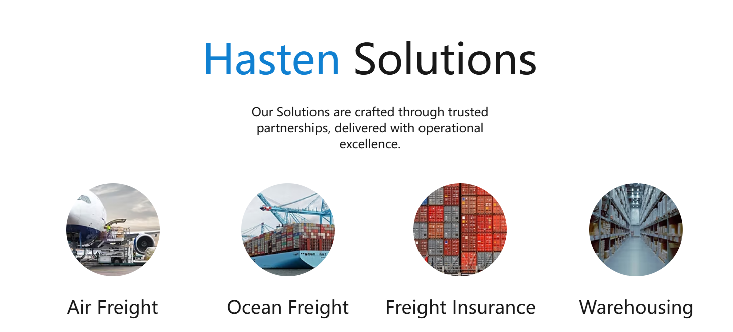 Hasten International provides fast, reliable global air freight with dedicated space, weekly consolidations, and flexible solutions tailored to time-critical shipments. Hardware Warehouse_edited.jpg About Us Our Story Founded on 15th of March 2019, we have survived the Covid Pandemic and have grown from strength to strength. We have shown quality services, exceptional efficiency and same time maintain our highest level of professionalism. We pride in providing solutions over pricing, overcome hurdles to not only meet, but exceed your expectations and ensure your full satisfaction. Our team is up for every job, managing projects with the skill and experience our clients have come to expect. We look forward to the future instead of looking at past achievements to keep improving ourself for our customer.