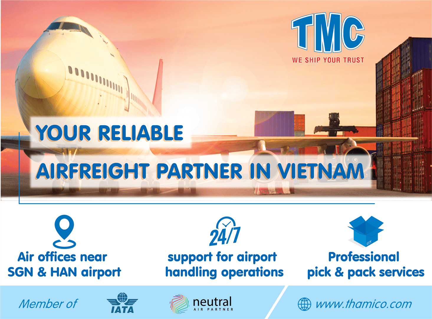 - Dedicated Air Freight Offices near Ho Chi Minh & Hanoi Airports with 24/7 operation teams