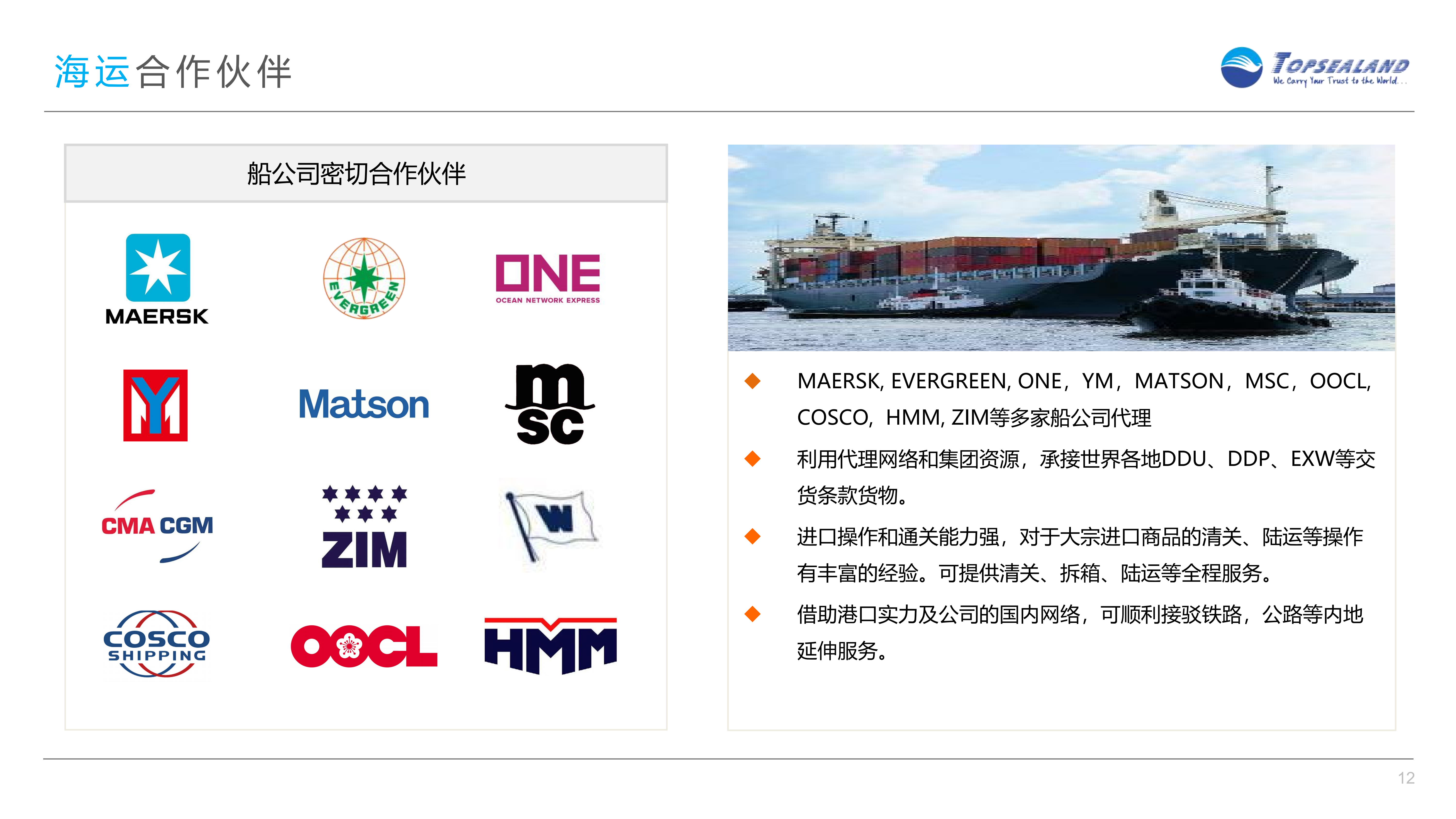 Adhering to the philosophy of "putting people first, providing high-quality services, building a foundation with integrity, and establishing a customer-centric business", Topsealand is committed to promoting the development of cross-border e-commerce and helping numerous enterprises expand their brands overseas. With its professional team and rich industry experience, the company has won wide recognition from customers and partners in the global logistics and cross-border e-commerce fields.