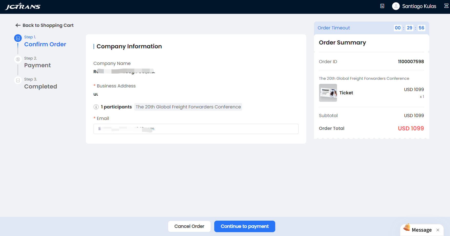 Please check your order information and company information on this page, and then click "Continue to payment".