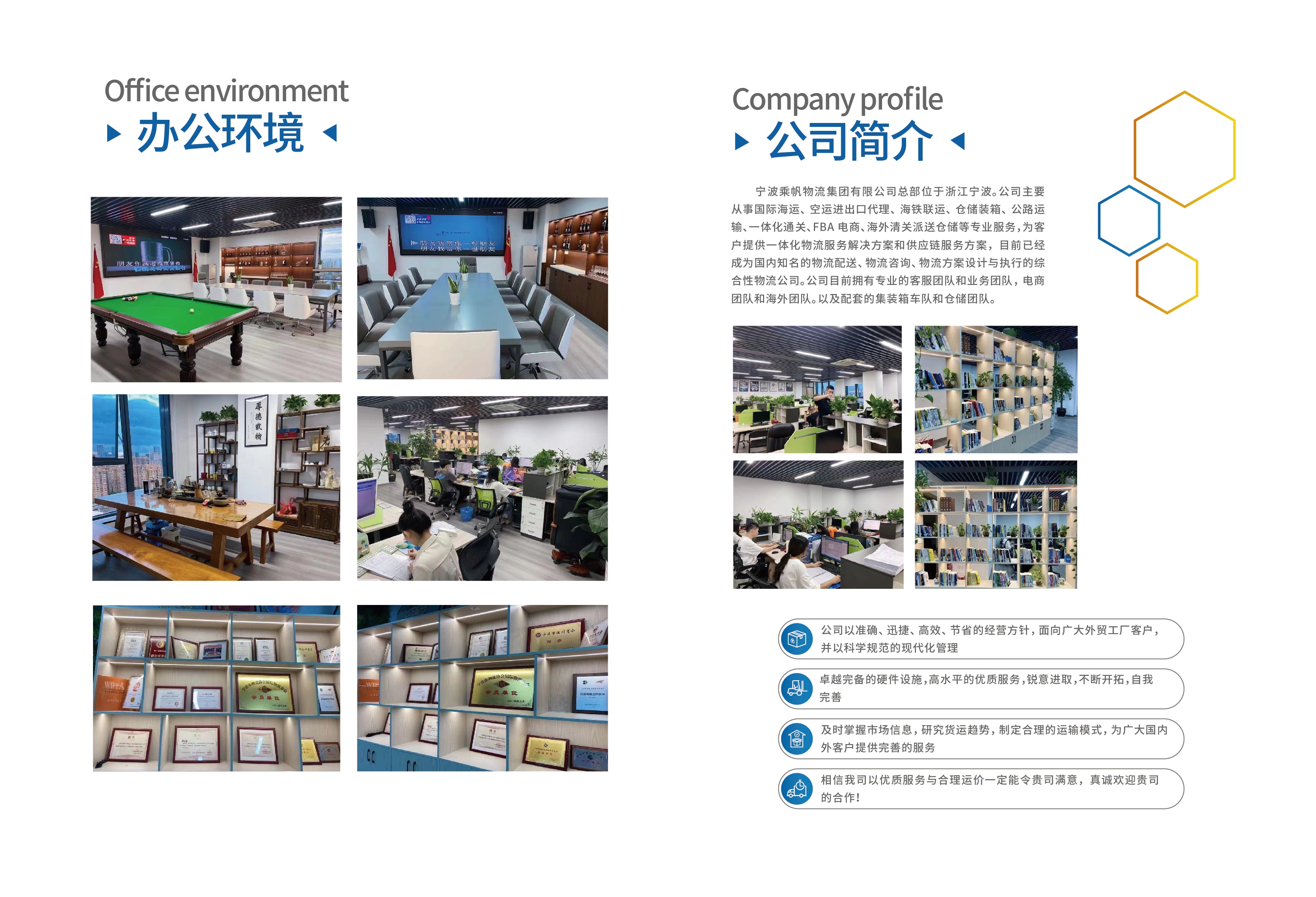 NINGBO CHENGFAN LOGISTICS GROUP CO.,LTD,IS AN INTERNAL FORWARD AGENCY WITH HEADQUARTERS IN NINGBO. WE SET UP IN 2013, OUR COMPANY CONTINUES TO DEVELOP THROUGH TEN YEARS OF INTEGRITY MANAGEMENT. IN 2021, THE COMPANY WAS ESTABLISHED UNDER THE GROUP, WHICH HAS 3A LOGISTICS ENTERPRISE QUALIFICATION, NINGBO YIDUI INTERNATIONAL LOGISTICS CO., LTD., SHANGHAI CHENGSHANGFAN INTERNATIONAL LOGISTICS CO., LTD., YIWU CHENGYIJI LOGISTICS CO., LTD., WENZHOU CHENGFAN INTERNATIONAL LOGISTICS CO., LTD. PT ASIA INTERNATIONAL LOGISTICS GROUP LIMITED。 WE UNDERTAKE SERVICES, SUCH AS BOOKING SPACE, CUSTOMS CLEARANCE, INSPECTION, THROUGH TRANSIT, OCEAN, LAND, AND AIR SHIPPING ,CONTAINER TRANSPORT,WAREHOUSING AND OTHER RELATED TRANSPORT SERVICES AND TRANSPORTATION CONSULTING BUSINESS. WE UNDERTAKE THE WORLD'S MAJOR TRADING PORT BUSINESS,ESTABLISH A GOOD RELATIONSHIP WITH EMC YML PIL ESL APL CMA MSK OOC LTSL COSCO RCL HPL AND OTHER SHIPPING COMPANIES, AND AIM TO SELECT THE BEST ROUTE FOR CUSTOMERS WITH THE CHEAPEST PRICE. WITH THE SPIRIT OF "UNITY AND PRACTICABILITY AND CREATIVITY", OUR COMPANY WHOLEHEARTEDLY PROVIDES SAFE, EFFICIENT, FAST AND CONVENIENT SHIPMENTS FOR THE NEW AND REGULAR CUSTOMERS. WE SINCERELY LOOK FORWARD TO WORKING WITH OTHER COMPANIES TO STRENGTHEN COOPERATION AND ENCOURAGE COMMON DEVELOPMENT.