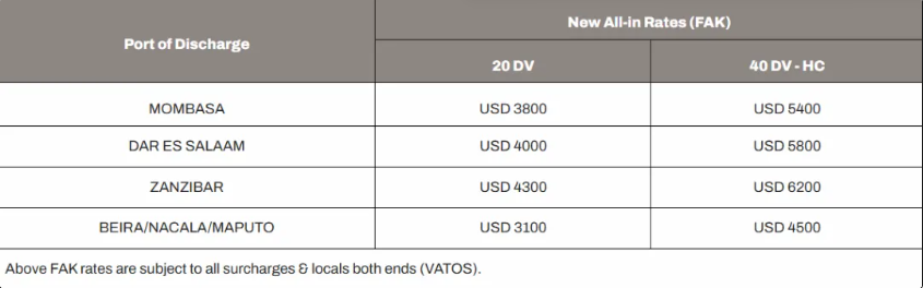 recently, the world's largest liner shipping company Mediterranean Shipping Company (MSC) has issued a notice of freight rates for the Far East-Africa Three Countries in 2026.