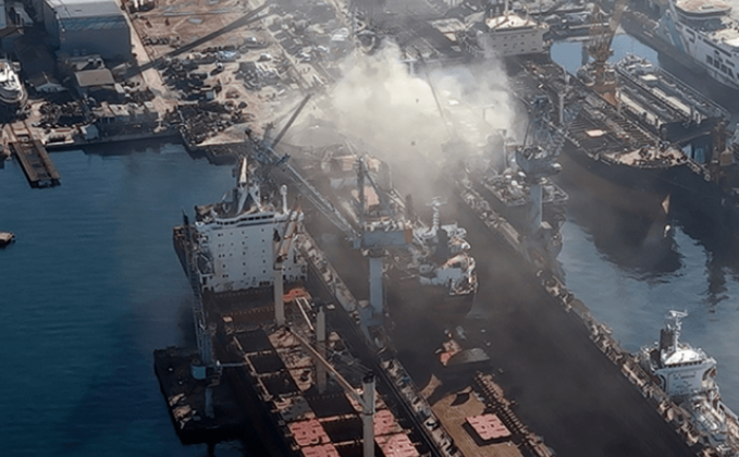 Fire breaks out during cargo ship maintenance operations, thick smoke envelops the scene!